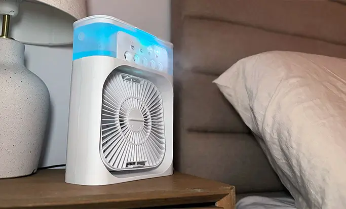 CoolMate Pro starts blasting a cooling breeze as soon as you turn it on. Hit the misting button and see why this tiny air chiller is second to none.